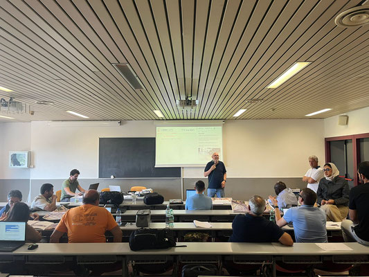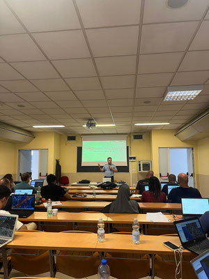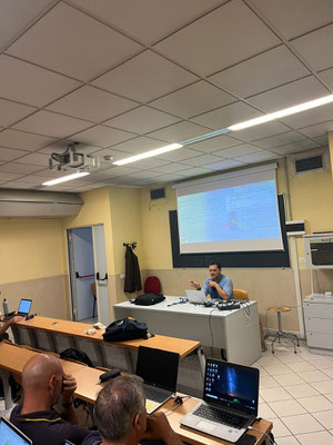 This year’s configuration was slightly different. The opening day featured alternating lectures and practical sessions by Prof. Andrea Malizia and Dr. Alessandro Puleio. Prof. Malizia introduced the students to the use of free-license software for dispersion simulations of RN agents (HOTSPOT, developed by Lawrence Livermore National Laboratory) and chemical agents (ALOHA, developed by the U.S. Environmental Protection Agency), while Dr. Puleio provided an in-depth focus on how Machine Learning, Deep Learning, and Artificial Intelligence can enhance CBRNe safety in simulations, identification, detection, and decision-making processes.
