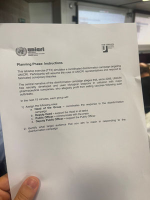 The second TTX was delivered by Dr. Francesco Marelli and Dr. Mariana Diaz Garcia from the United Nations Interregional Crime and Justice Research Institute (UNICRI) (https://unicri.org). This innovative session combined first-level and second-level students, starting with a set of front lectures that prepared the ground for a TTX on disinformation management. Students had to analyze injects, prepare official responses, and act as spokespersons in a simulated press conference—an incredibly realistic and unique experience that we hope will become a tradition in the years to come.
